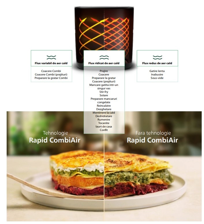 Friteuza cu aer cald Philips Airfryer Combi XXL conectat HD9876/20, tehnologie Rapid CombiAir, conectat cu HomeID, capacitate XXL de 2 kg/8,3 l, 22 de functii de gatit, alb
