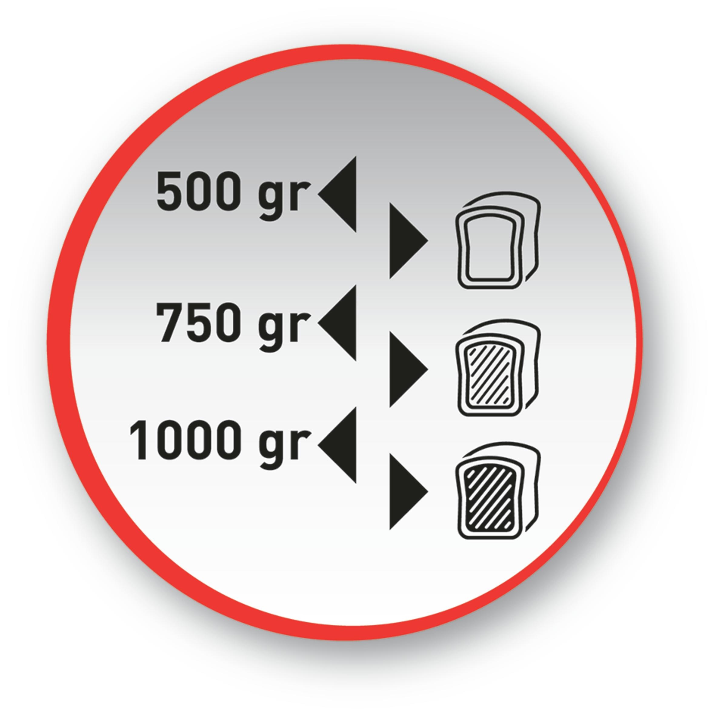 From 500 gr to 1 kg to satisfy all preferences. Select the crust color: from soft white bread to brown and crispy bread.