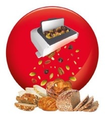 Enrich your preparations with nuts, raisins and chocolate chips using the large automatic dispenser.