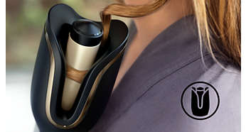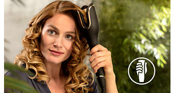 Ondulatorul automat se tine intr-o pozitie verticala naturala, oferind prindere relaxata si permitandu-ti sa creezi bucle omogene perfecte pe tot capul. Butoanele de operare sunt pozitionate la indemana, asa ca poti ajunge intuitiv la ele. Forma curbata, feminina a camerei de ondulare confera confort la ondulare chiar si aproape pe scalp.