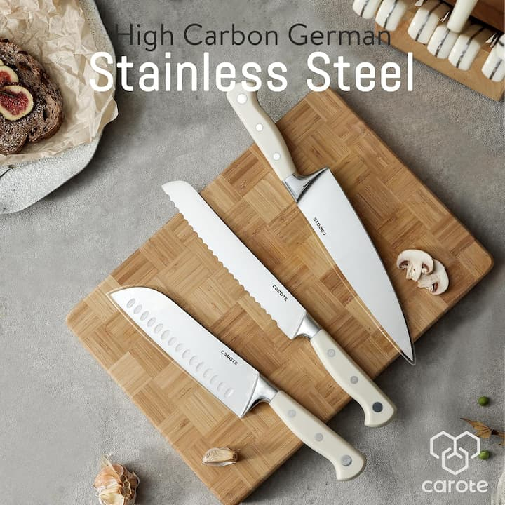 Toate lamele realizate din otel inoxidabil, extrem de ascutite si foarte usor de curatat pentru performante uimitoare, rezistand, de asemenea, la pete, rugina si bacterii. Toate cutitele sunt din otel inoxidabil si finisate cu laser pentru un finisaj neted si transparent al lamei.