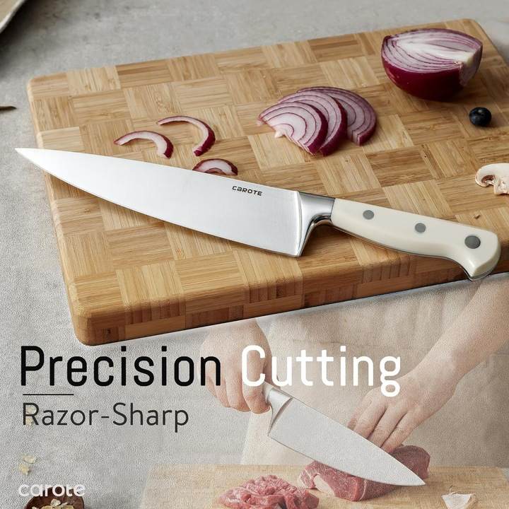 Set de cutite profesionale Carote – precizie si durabilitate in bucatarie. Lame ascutite din otel inoxidabil si manere ergonomice pentru o experienta de taiere confortabila si sigura. Ideal pentru orice bucatar pasionat!
