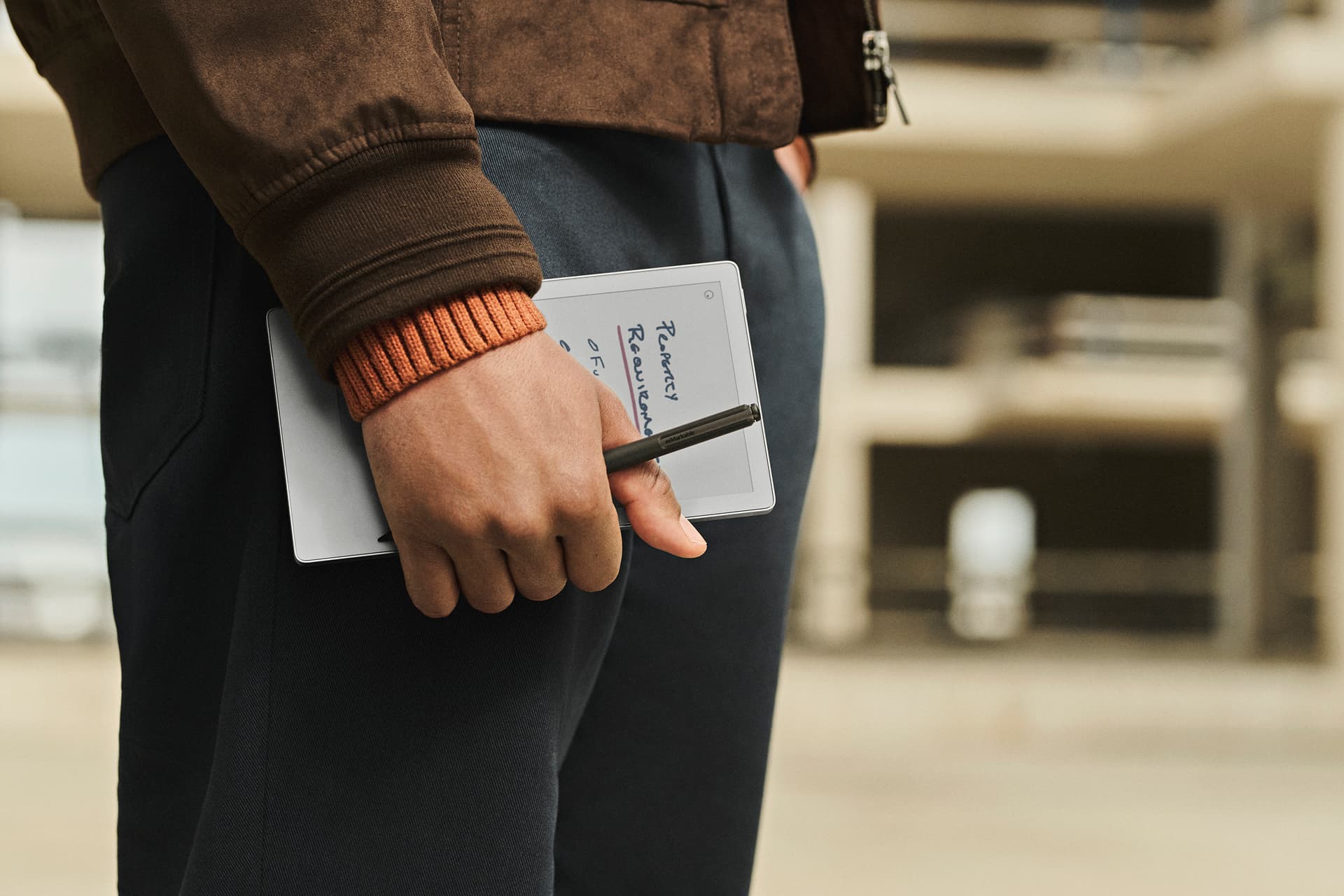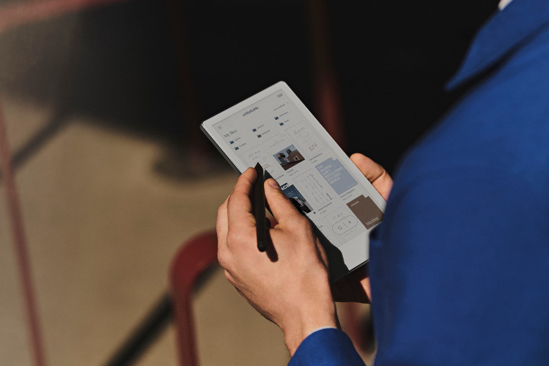 Cu un cadru din aluminiu anodizat si un ecran din sticla texturata, reMarkable Paper Pro Move arata intotdeauna profesional.