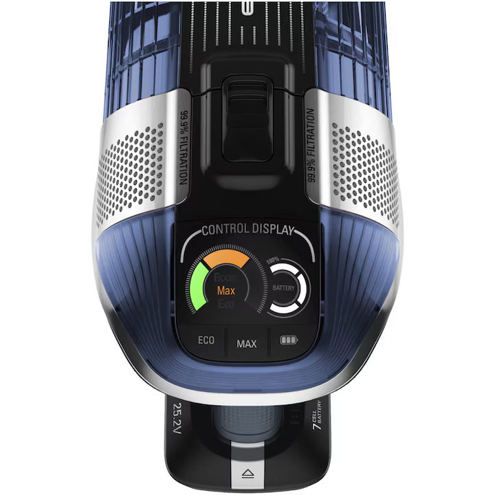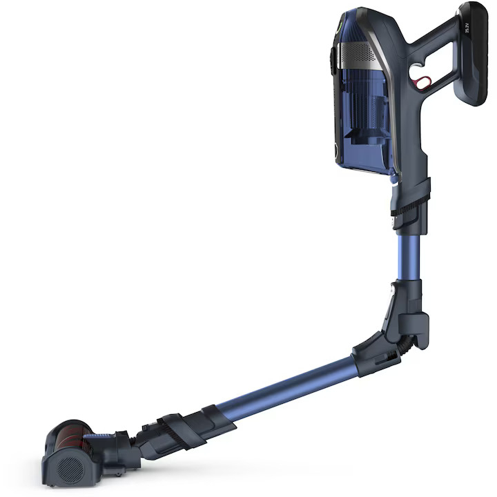 Rowenta X-Force Flex 11.60 RH9890WO Cordless Upright Vacuum Cleaner with Mop, 300W, 25.2V, 45 min autonomy, 99.9% filtration, 0.9 L dust container, flexible tube, LED brush, SmartControl digital panel, wall mount with charging, gray/blue