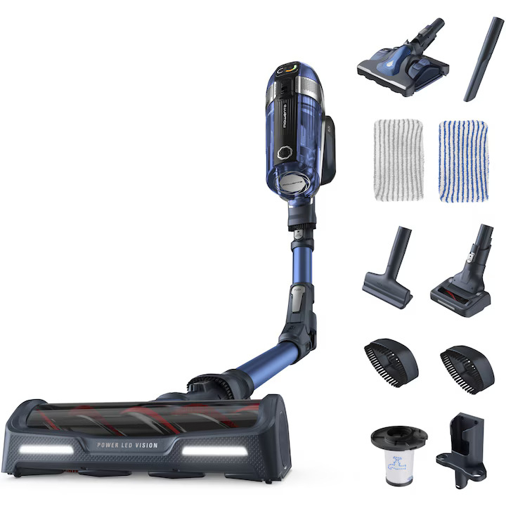 Rowenta X-Force Flex 11.60 RH9890WO Cordless Upright Vacuum Cleaner with Mop, Gray/Blue