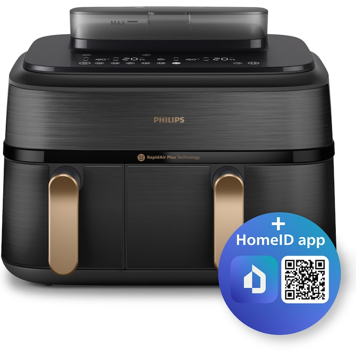 Descopera Philips Airfryer Dual Basket cu retete personalizate in aplicatia HomeID. Bucura-te de instructiuni pas cu pas si acceseaza sute de preparate delicioase cu setari personalizate pentru Airfryer