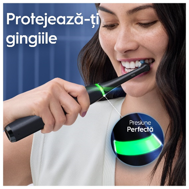 Senzorul inteligent de presiune afiseaza o lumina rosie atunci cand periati prea tare si verde atunci cand periati corect.