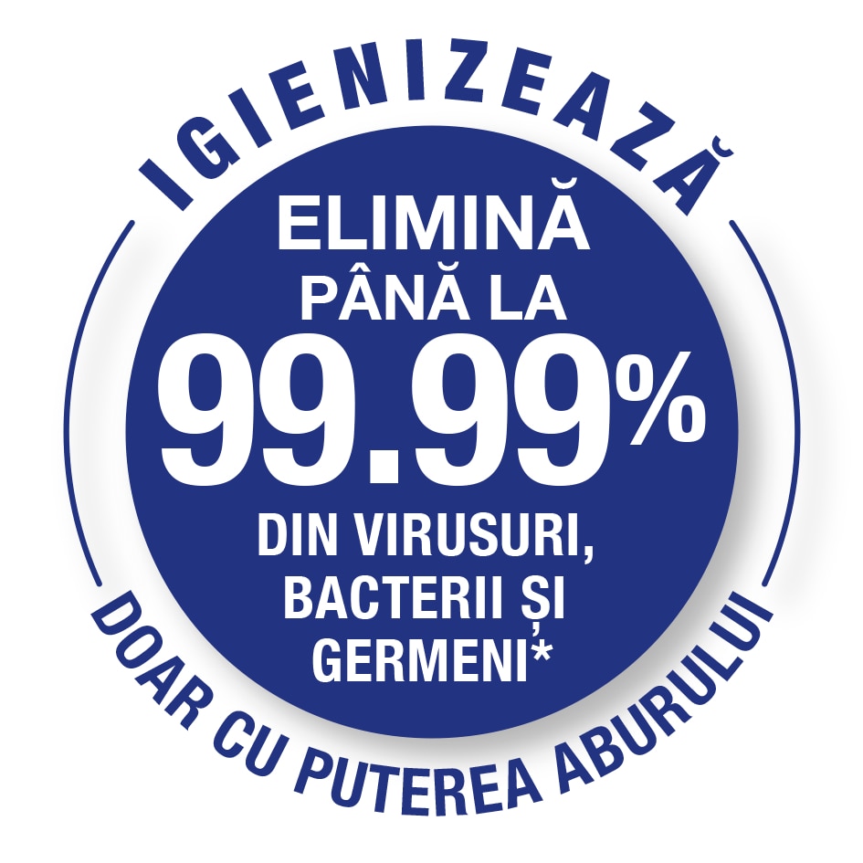 Elimina pana la 99.99% din virusuri, bacterii sau germeni* cu ajutorul puterii naturale a aburului.